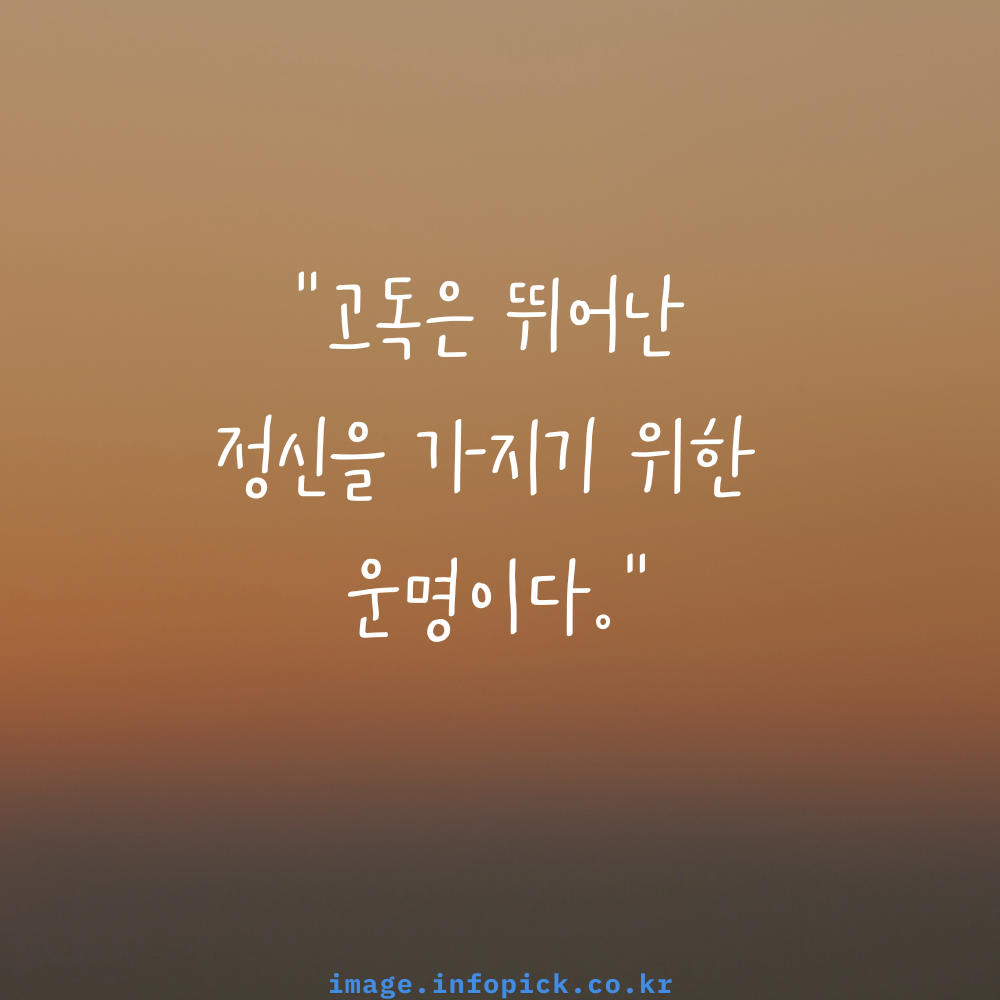 5. 고독은 뛰어난 정신을 가지기 위한 운명이다. 깊이 생각하고 통찰하는 뛰어난 정신을 가진 사람은 세상과의 조화보다는 고독 속에서 자신의 사유를 발전시키는 경향이 있습니다.